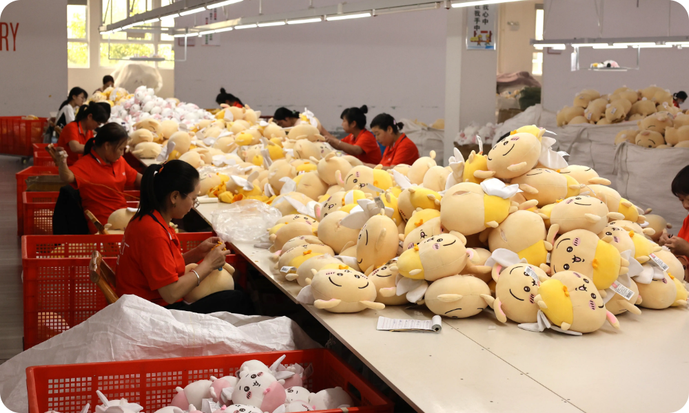 Plushies 4U specializes in providing high-quality, custom-designed plush toys to meet the needs of global businesses. With two state-of-the-art factories covering 3,000 square meters, and a commitment to innovation, we combine scalable production capabilities with exquisite craftsmanship to bring your creative vision to life, whether your order is in the hundreds or tens of thousands.